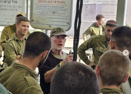 | | Steven Mizel speaks with I.D.F's Nahal Infantry troops headed towards Gaza, May 2024 |