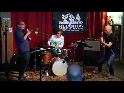 Samuel Blaser, this year's "Rising Star - Trombone" leading a trio for a show in June 2018 at Bop Shop Records in Rochester, NY.