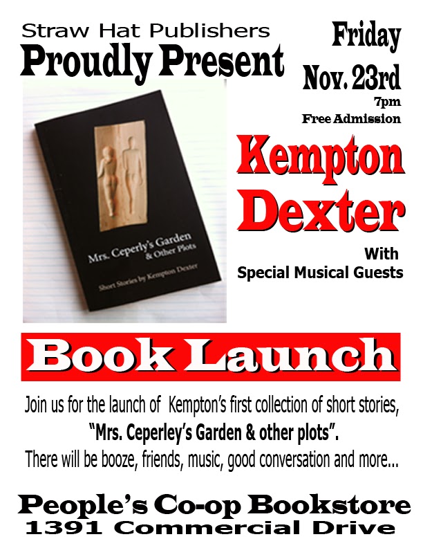 Join musician/playwright/storyteller Kempton Dexter for the launch of his first collection of short stories, "Mrs. Ceperly's Garden and Other Plots" at Commercial Drive's People's Coop Bookstore.