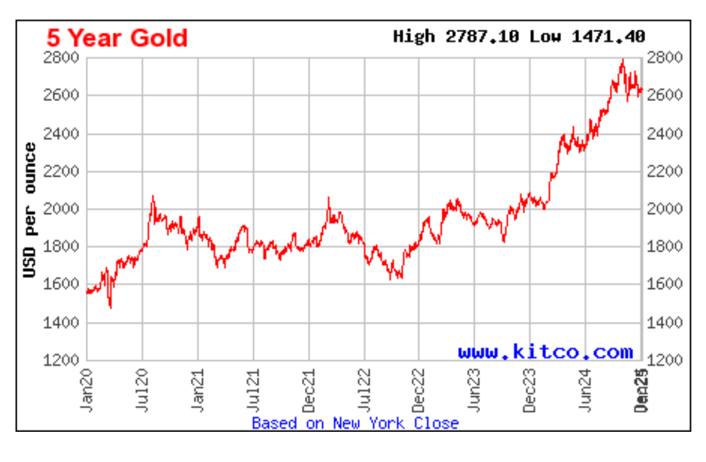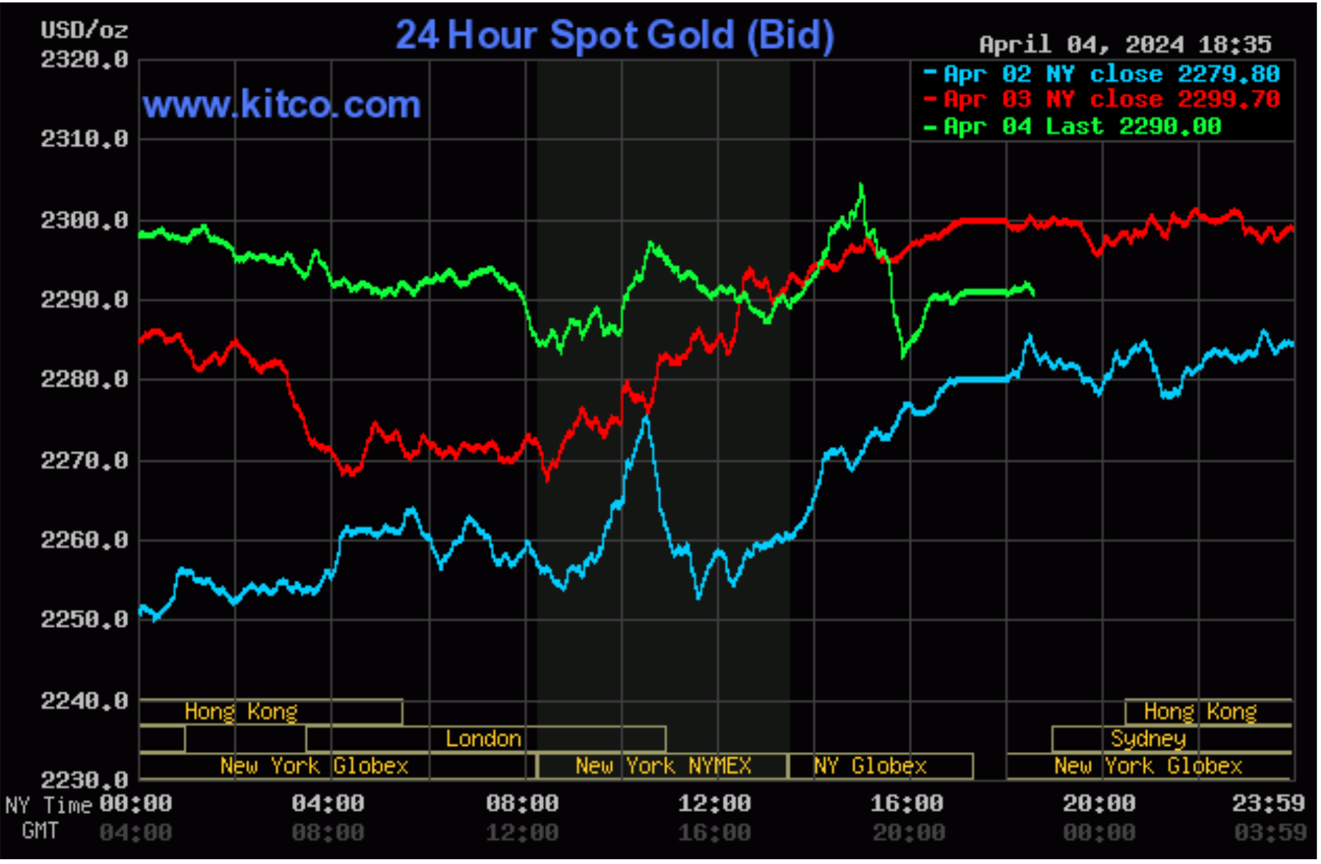 Note that this chart stops in 2005. Here below is the chart from Kitco for the last three days. The dollar price is up to $2,290 as of this writing, even touching $2,304 for the first time in history. Not a bad investment, right? (But I’m not an investment advisor.)