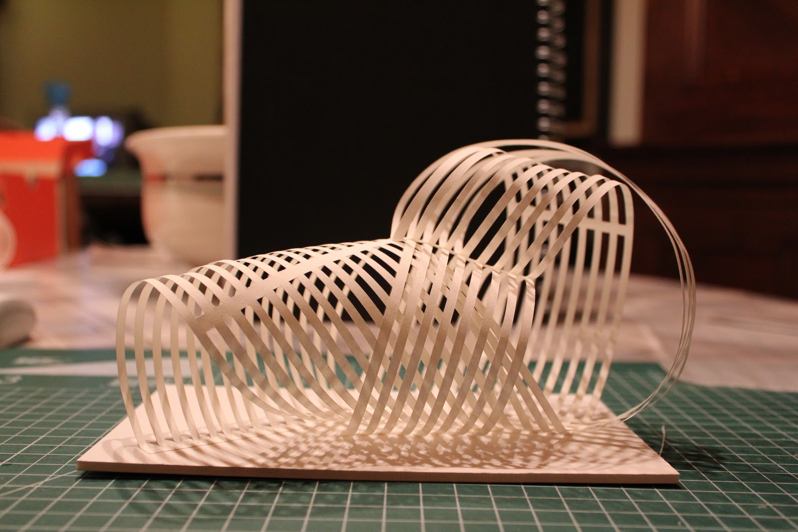 These are pictures of a paper sculpture I made. The assignment was to visualize a word in 3D form. The choice of paper as material made the assignment at the first glance, hard because paper is such a fine material. But with such a neutral material as paper, it becomes such a malleable communicative middle.