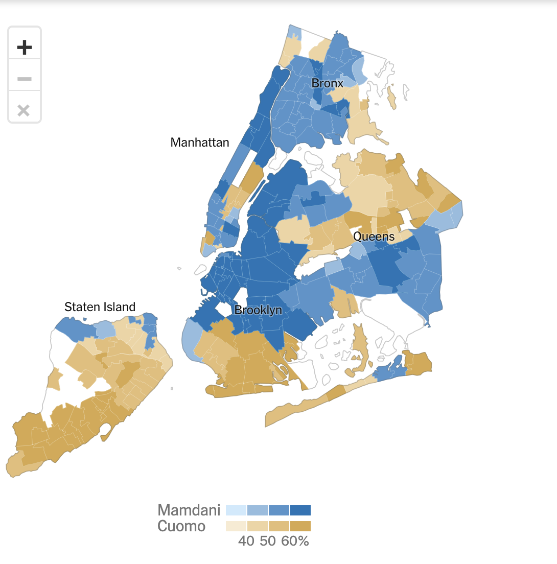 I get this from people -- they view Mamdani as a rich kid playing politics. So, how many people are voting for Mamdani or against Cuomo? If Brad Lander has run as an independent instead of Cuomo, I'd give him an even chance -- he would gather votes from the Cuomo haters and more Republican votes. Last week, in conversations with people I met in some of my classes and tours I gave, including some UFT retirees, there was clear support and even enthusiasm for Mamdani. But I had lunch last week with a guy who was on my Murray Hill tour -- from Riverdale with an 11 year old daughter - not a teacher but a businessman running his own business in the city -- and he brought it up - he was excited at Mamdani -- he looked to be in his early 50s. So, personal conversations are a mixed bag -- and I have to adhere to this dictum: judgments