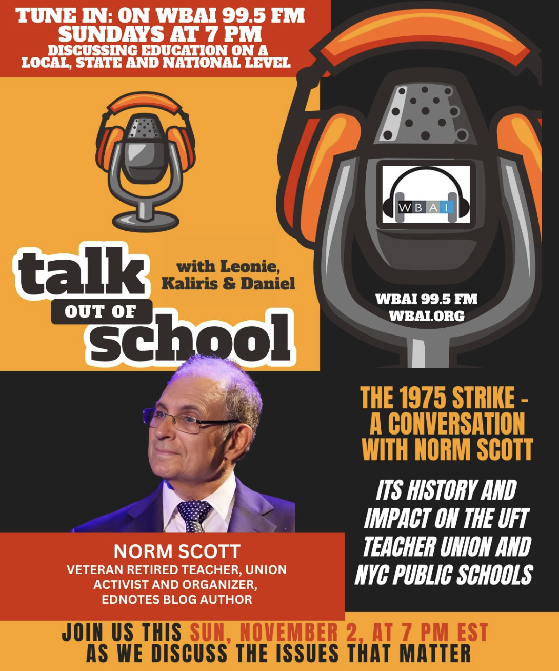 The 1975 NY Teacher Strike: Its History and Impact - Norm on Talk Out of School Tonight at 7PM