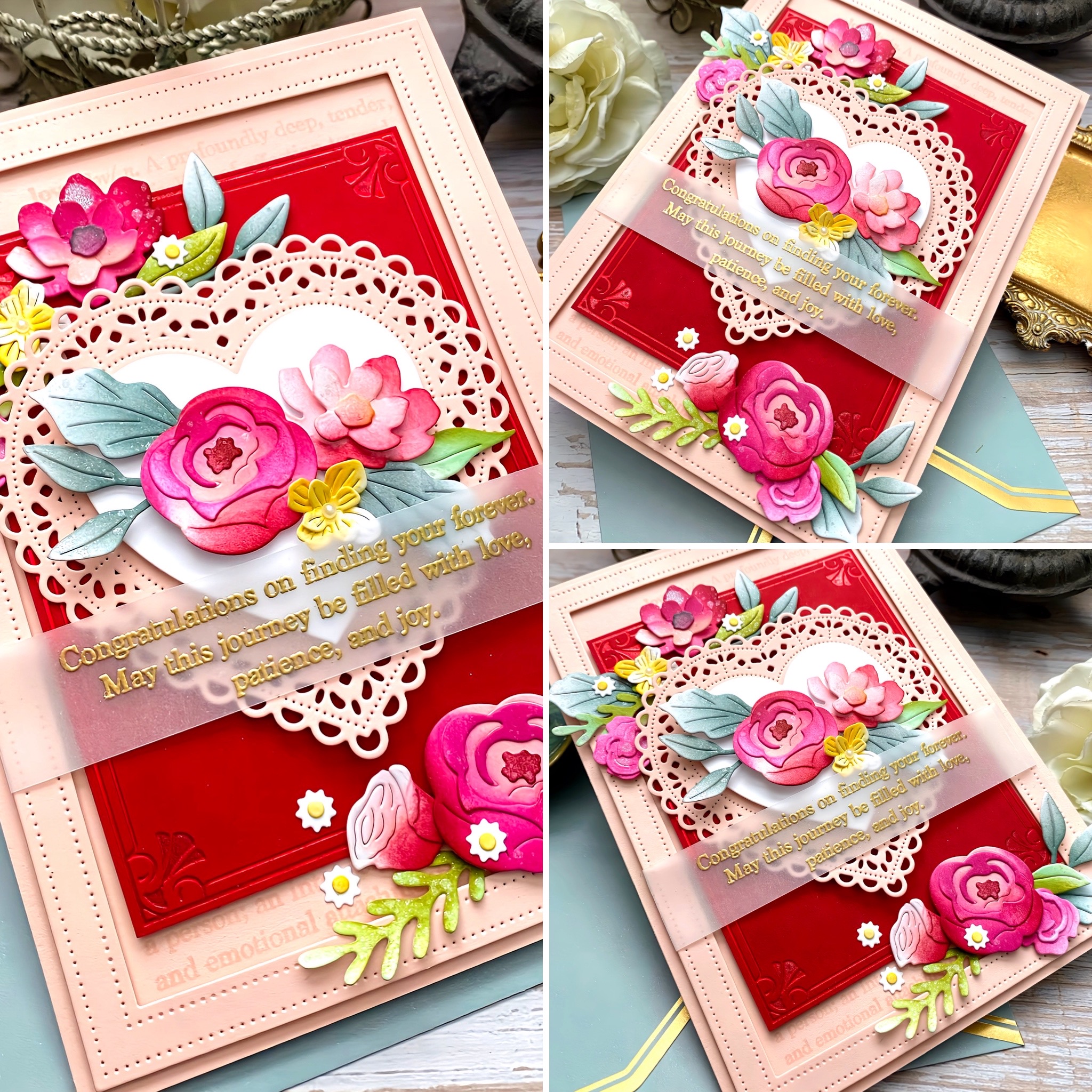 As you can see, I used another Coquette Heart because I just can't seem to stop! I also used another bouquet of flowers, but this one done up in pinks and corals.