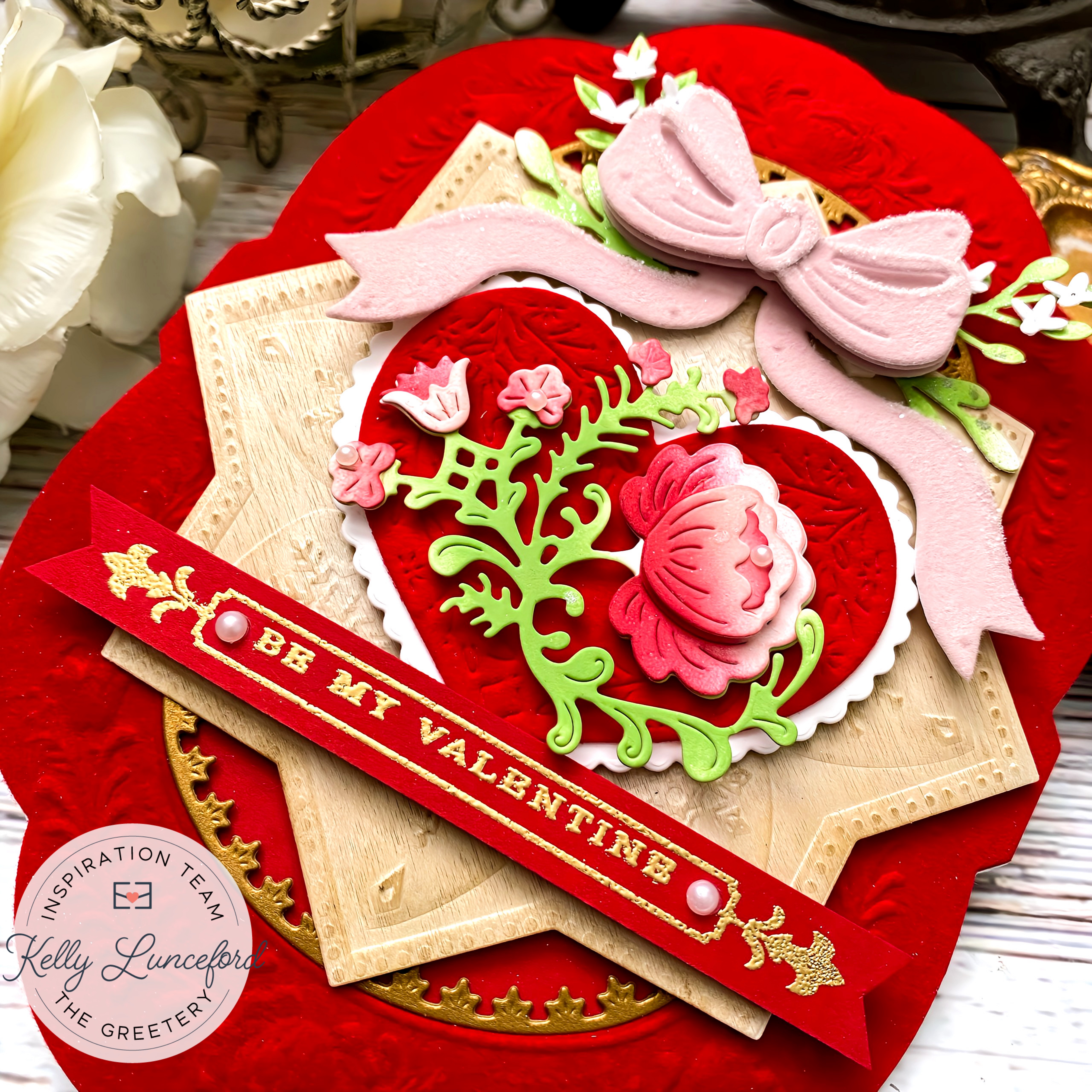 Hello friends! It's me again with yet another project for The Greetery! I've been having the best time creating Valentine's Day cards and projects using the beautiful products that have been released over the last few months! I had a few scraps leftover from the card I shared on Christmas, so I thought I may as well use them and share the process with you. I promise I won’t make a habit of sharing “leftover scrap” cards when I’m creating posts for The Greetery! Ha ha! I was pleased at how nicely the leftovers worked to create a Valentine’s Day card AND, I know many of you might not be ready to put away these amazing products, because I know I’m not. That’s the beautiful thing about these last few releases; yes, they have Christmas imagery and sentiments, but not EVERYTHING is Christmas! These are wonderful and beautiful basics that could (and should…wink!) be at our fingertips all year long!