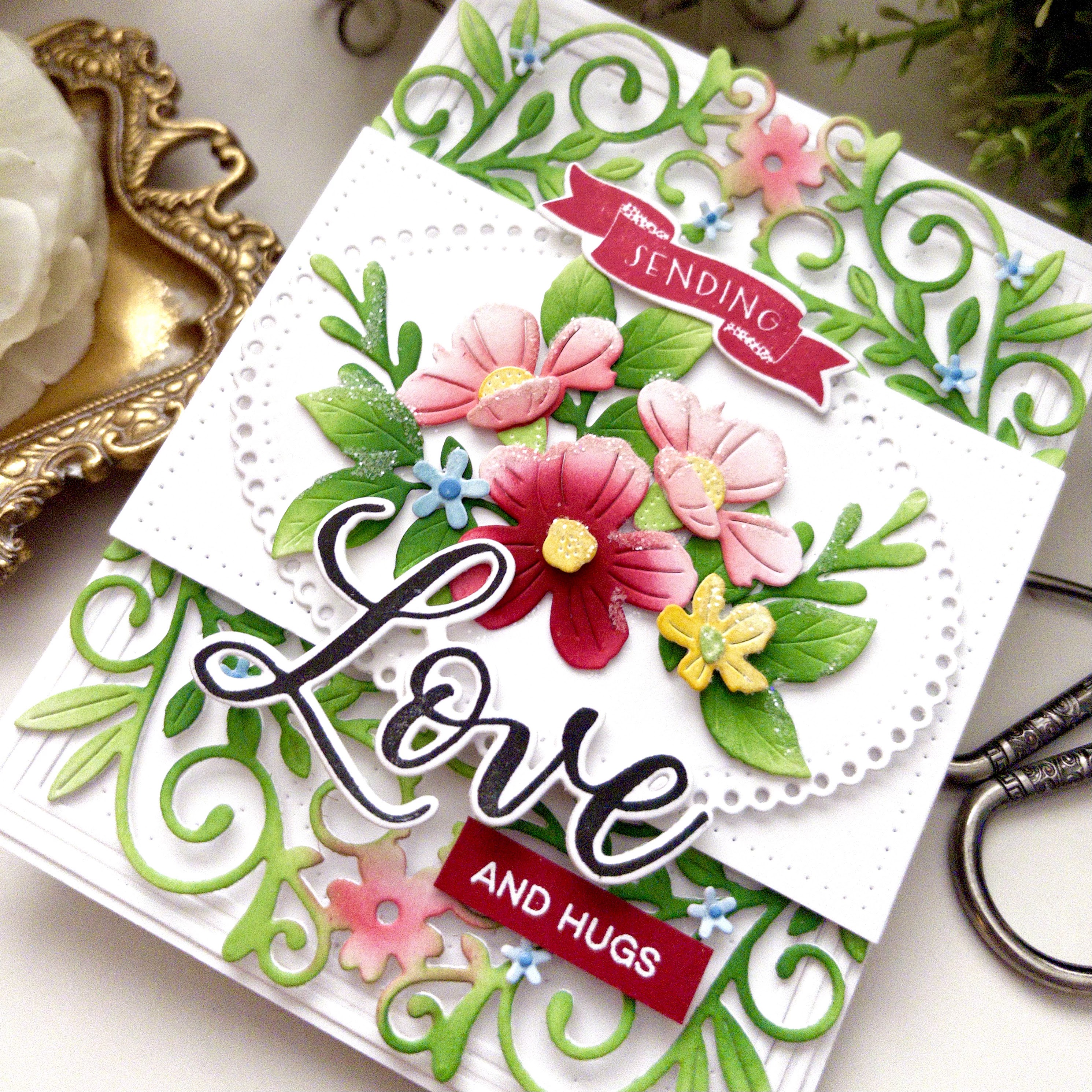 Step 5: Add the tiny flowers (included in the Into the Blooms: Wild Wood Die-linked above) to the vines using liquid glue.