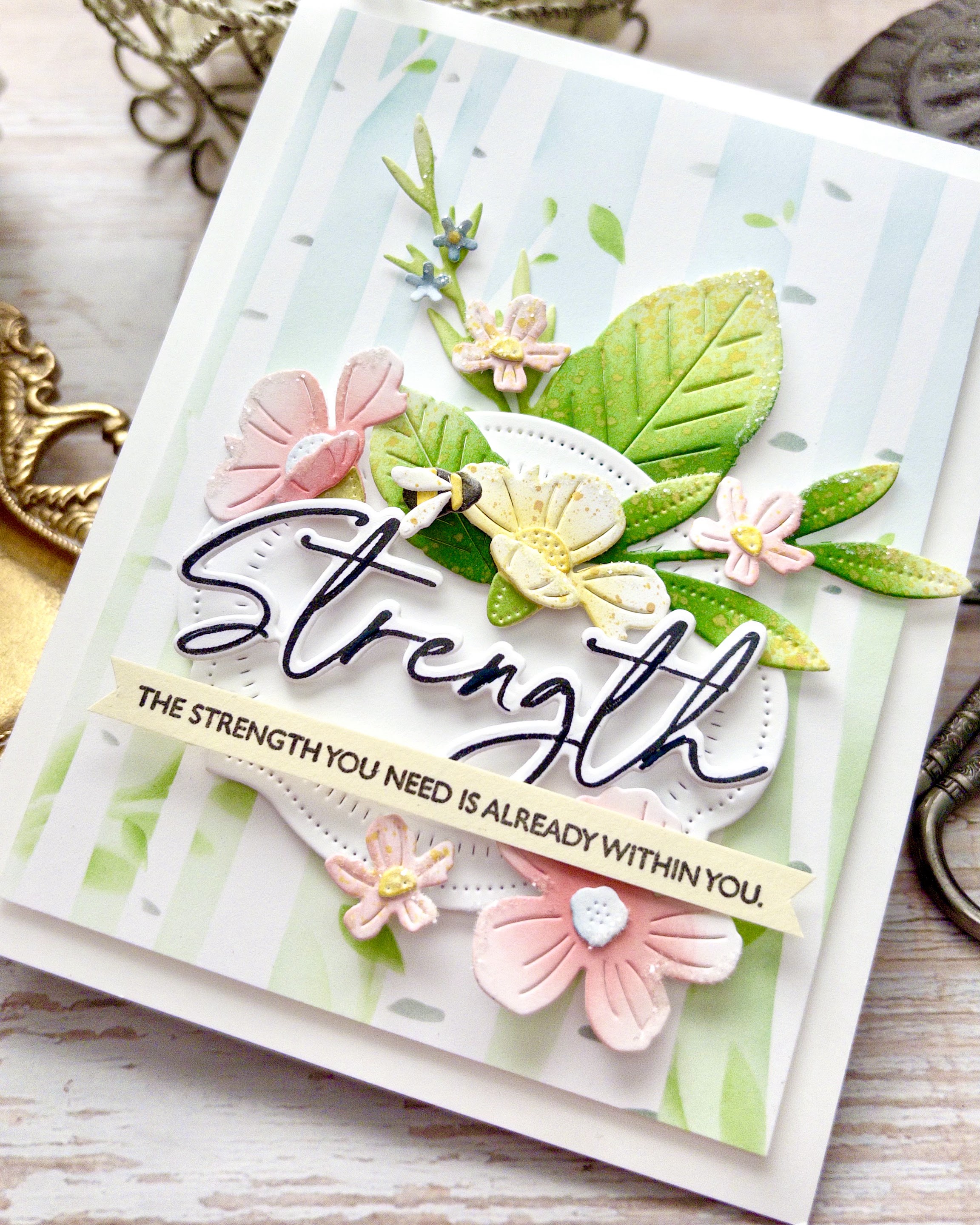 I used the bold Strength stamp yesterday, but wanted to show you the other option included in the set.