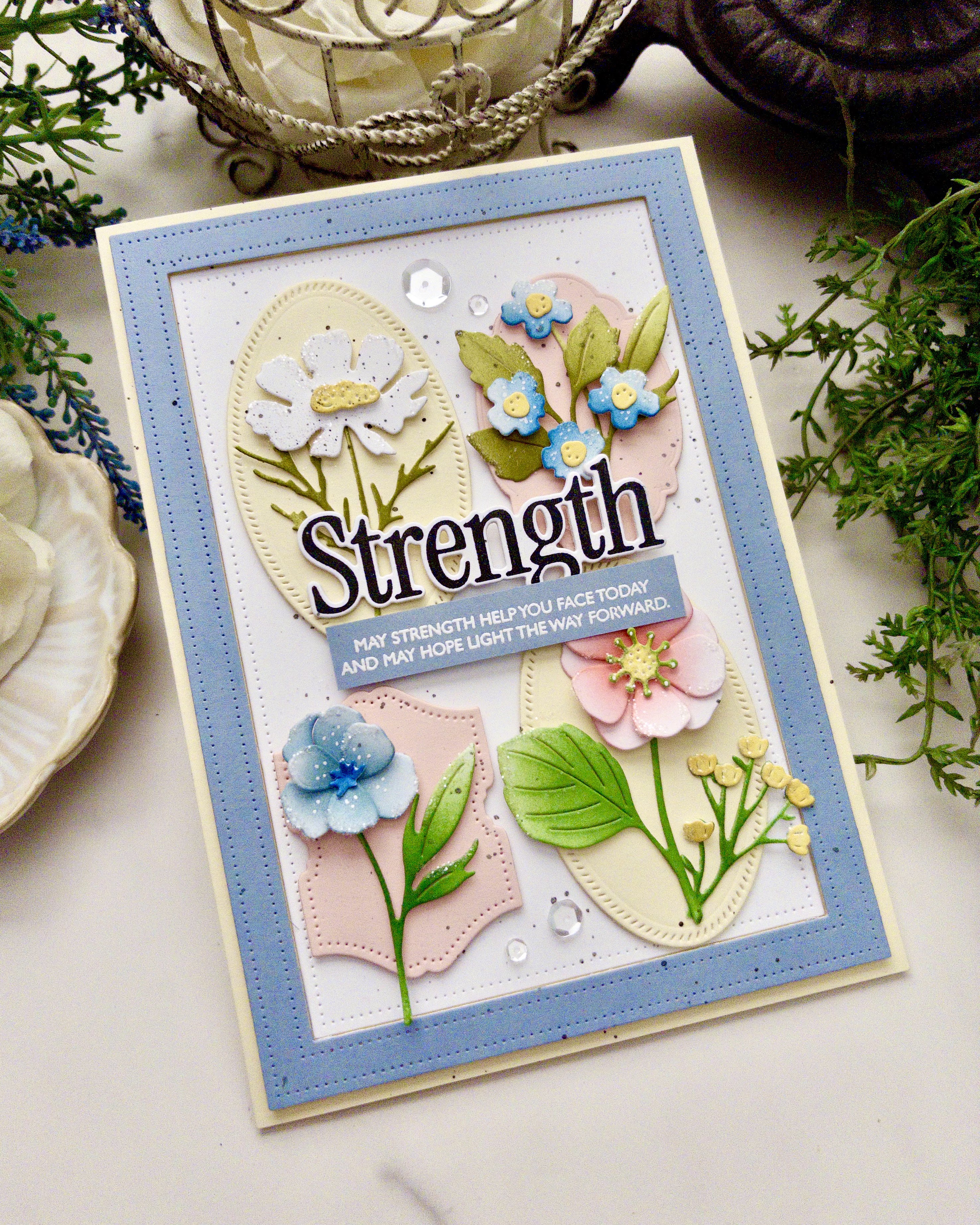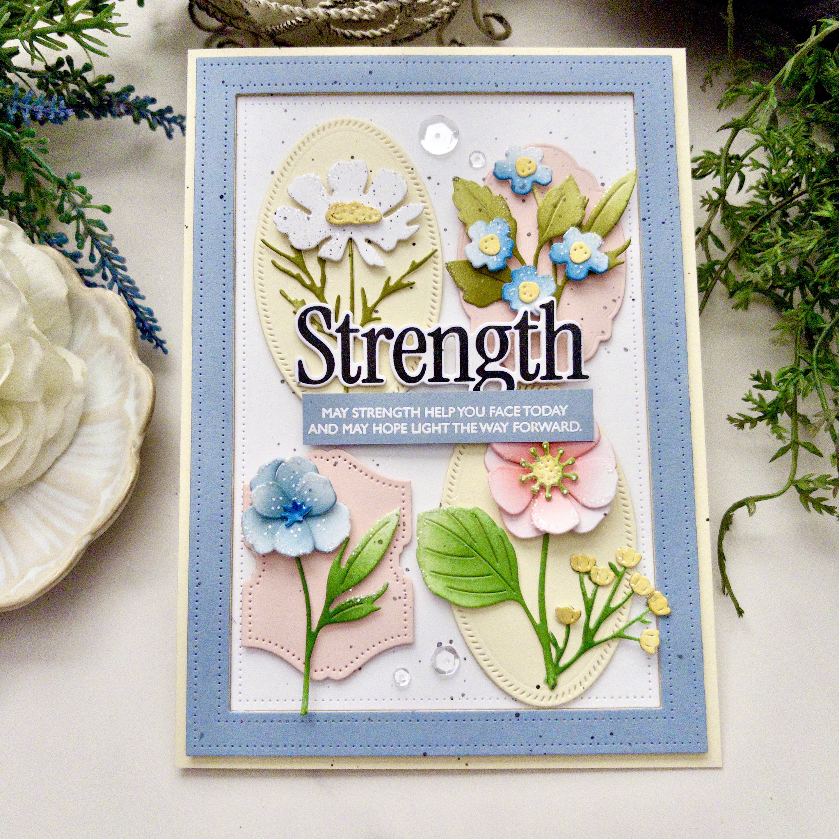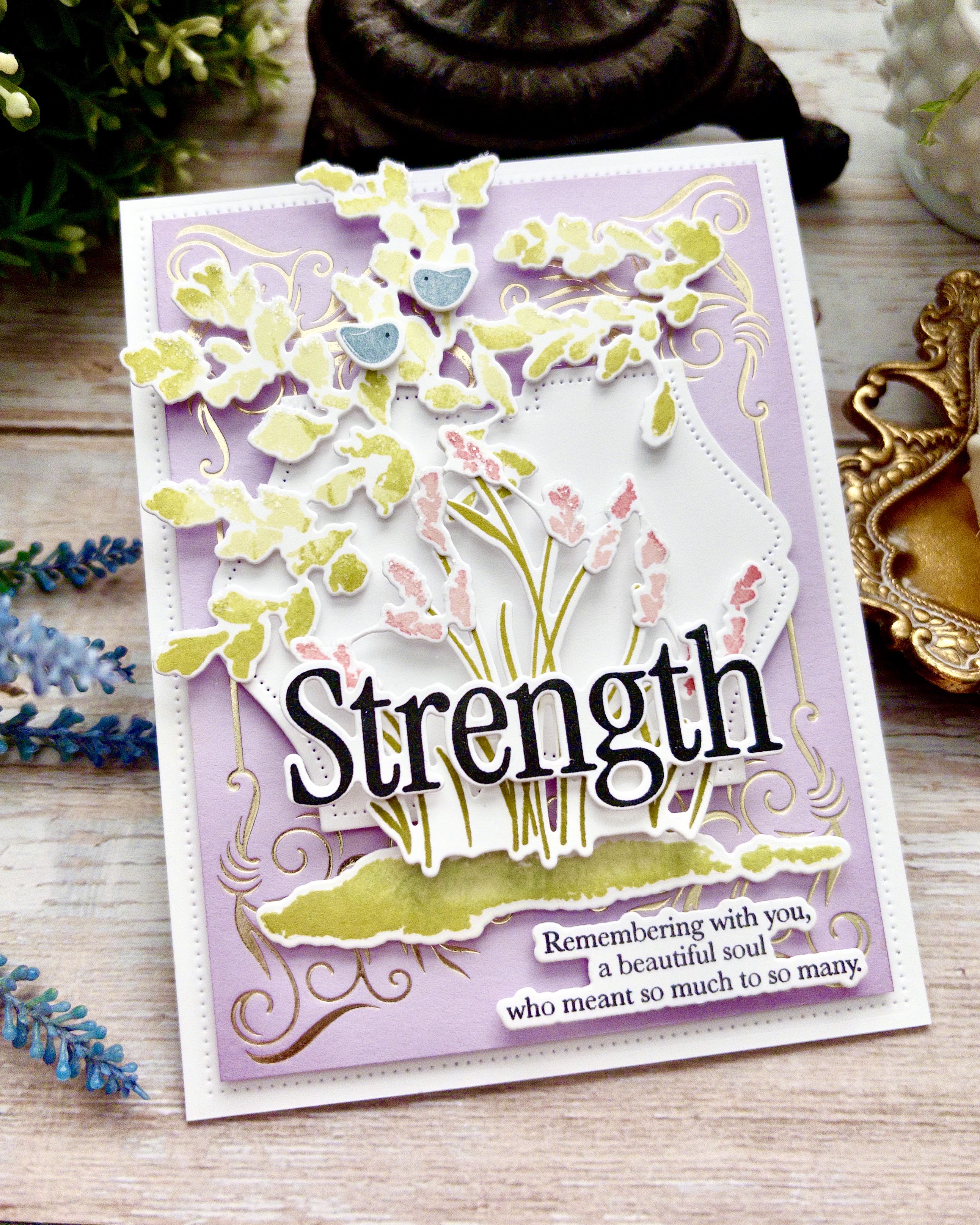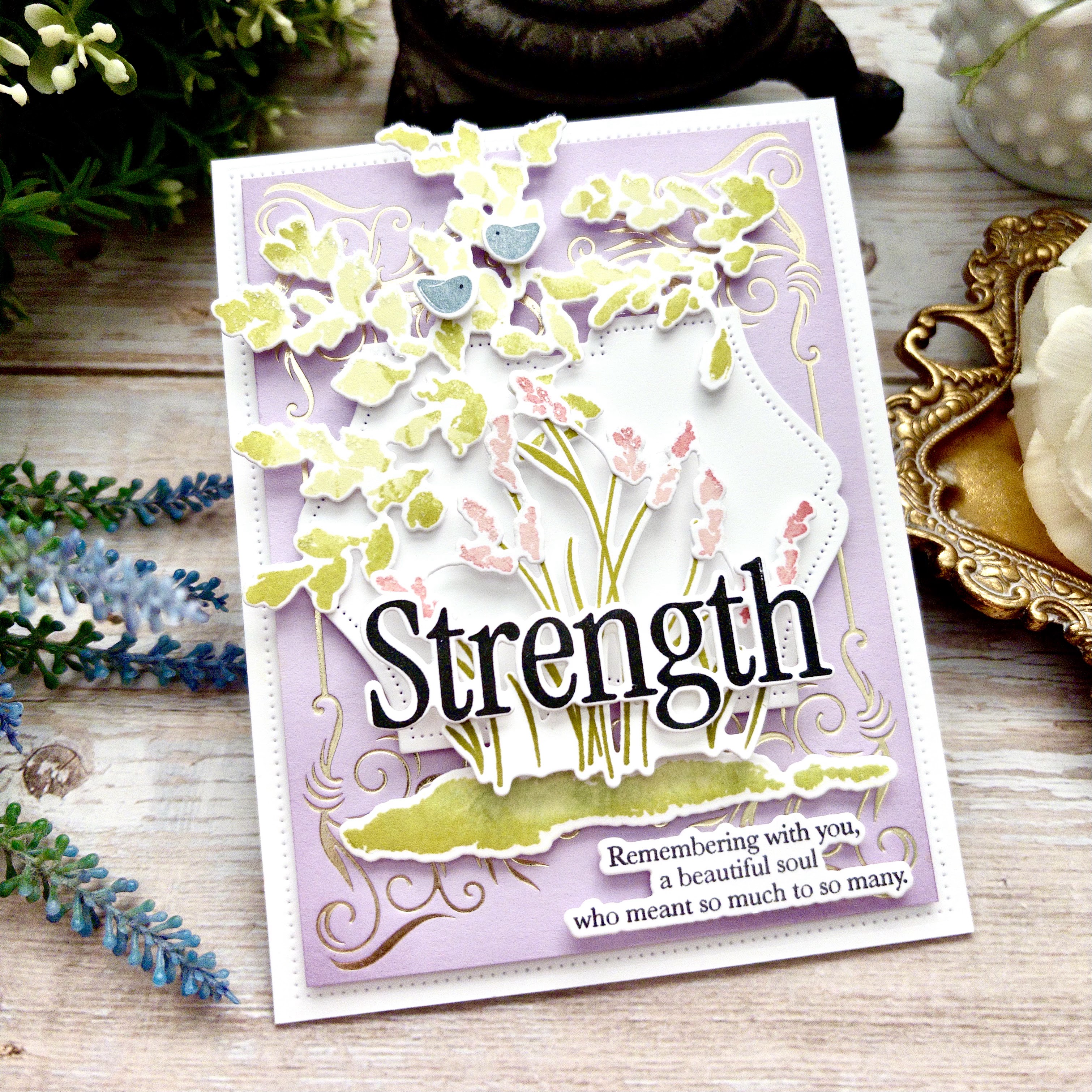 My goal was to use each of the three included sentiments on each of the three cards. For this first card, I paired the "remembering" sentiment, which is included in the set, with the Strength sentiment that was featured on day 1.