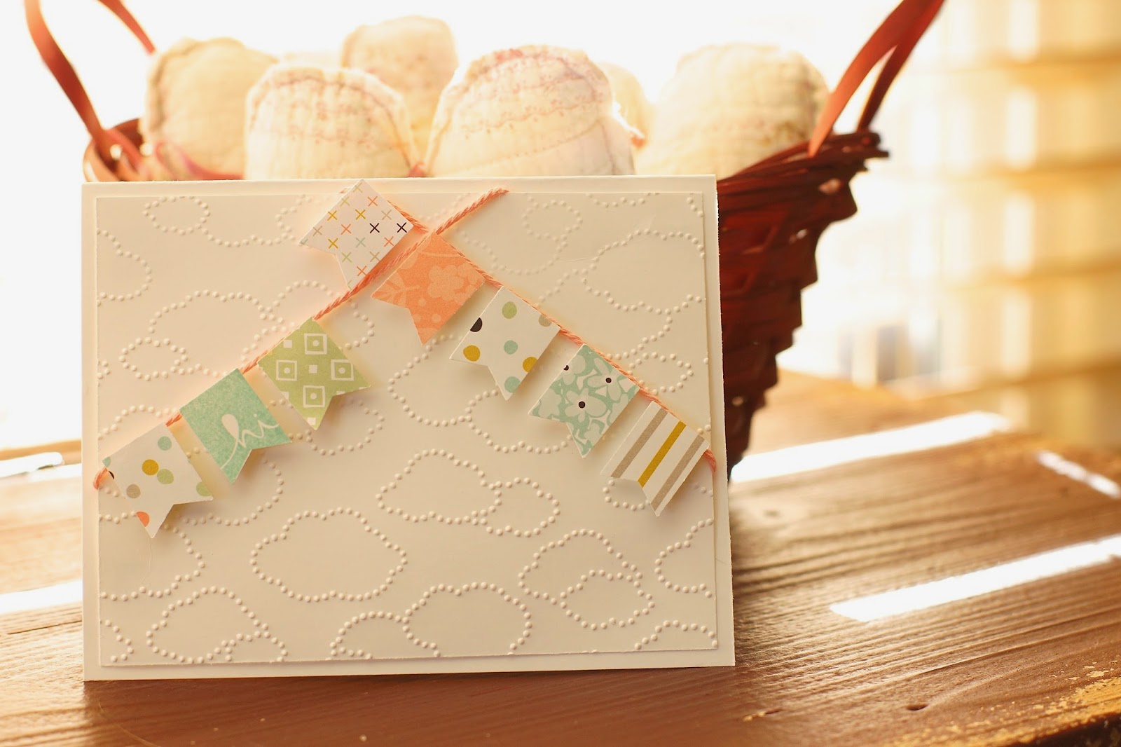 Accessories: Cloudy Day Embossing Folder ( retired), Sweet Sorbet Accessory Pack - Crisp Cantaloupe Twine (133522), Pop Dots.