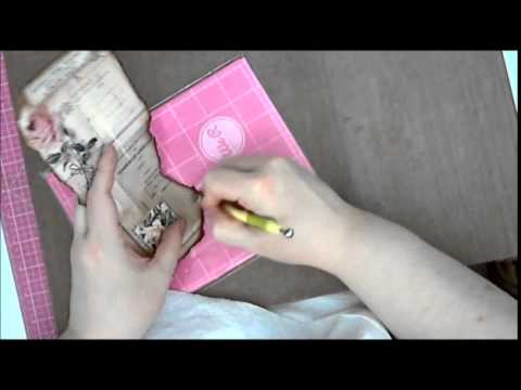 For the first project, I recycled a book, cutting the insides out and replacing them with pockets on each side of the inside cover.