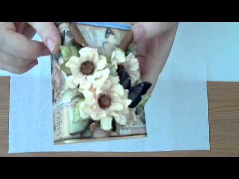 The entire organizer is covered in brown packing paper. Crumple and scrunch (yes, technical words here) the packing paper a few times. Glue the packing paper down with Collage Pauge (or your favorite glue), patting the paper onto the surface. Apply the glue to the box instead of the paper to keep all of the texture from crumpling. If you apply the glue to the paper, it can smooth out the crumples.