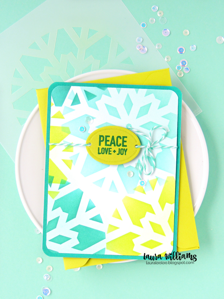 Lastly, here's a collage-style card that shows a layering idea with the snowflake stencil. It's a bit more subtle and it demonstrates a way to fill some white space using a stencil. I hope these cards have inspired you to take a look at the stencils in your stash, (or you know. . .do a little bit of shopping for something new!) Today is release day of the Sugar and Spice collection at Simon Says Stamp. Man, is this collection packed with all sorts of great winter items, but also some super cute products to use all year long. I'll be back on Saturday with some more projects to share but in the meantime head on over to Simon Says Stamp and check out the entire collection!
