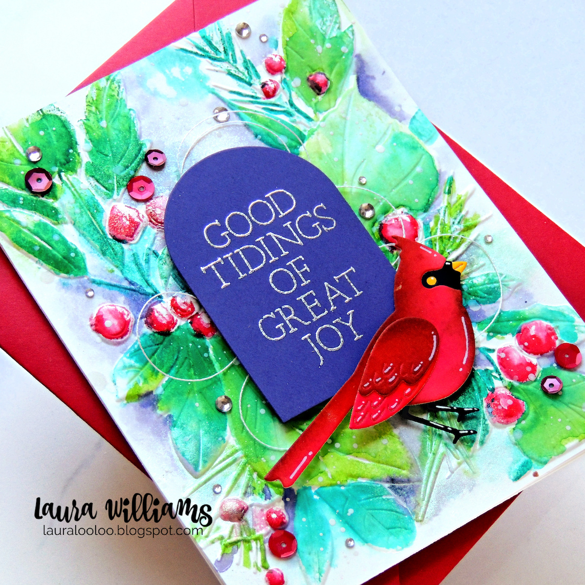 This blog post contains affiliate links. When you shop through my links, I receive compensation at no cost to you. Thank you from the bottom of my crafty heart! Both of today's cards begin with the same background, the Leafy Double Garland Embossing Folder. This is a great background for holiday and winter card making. I went BOLD for these backgrounds, but this would also be beautiful as a subtle texture behind a clean and simple holiday card. After embossing a piece of watercolor paper, I used watercolor paints as well as Simon Hurley Solar Spray, and Spellbinders Splatter White to add all kinds of messy color to this background. Here's a TIP: When working with watery paints, keep your heat gun or a hair dryer handy to quickly dry sections if paint starts running or blending where you don't want it to! Sometimes even a quick dab with a tissue is helpful if it your artsy gets a little too fartsy. ;) To finish this card, I added the new Brilliant Cardinal die, as well as a heat embossed sentiment from Stacked Holiday Sentiments. This closeup photo shows the pearly shimmer of the Solar Sprays nicely! Such a fun fancy detail! Next up, same background, and same colors but I started out a little different. For this card, I actually put some watercolor straight onto the embossing folder, sandwiched my watercolor paper in, and carefully put it through my die-cutting machine. This presses the color right into the paper. It wasn't quite enough color, so then I went back and added more paint, water, and then Solar Spray, plus another sentiment from Stacked Holiday Sentiments. This time I added the sentiment onto vellum. Here's a TIP! If there's a bit too much background showing through, add a second layer of vellum to make the words pop. Another vellum tip - staples are a great way to adhere vellum to a card, with no pesky adhesive to hide! Thanks so much for stopping by today. I hope you're feeling inspired to get your hands a little messy and embrace the spritzy, splattery, shimmery side of the holidays! Don't Miss Out on the Fun:- Stop by the Simon Says Stamp website to see the entire And Everything Nice collection.
