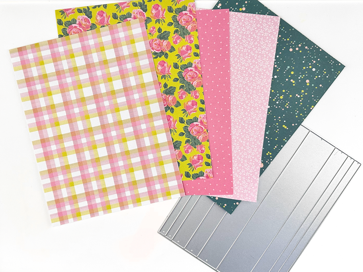 "I'm in love! I'm in love! And I don't care who knows it!" (Please say it like Buddy the Elf, while throwing your hat in the air. Thank you.) I'm honestly pretty smitten with today's die set. It checks a lot of boxes for me: Simple to use (check.) Totally versatile (check.) Helps me make a bunch of cards at once. (check check.) In today's post you'll find some helpful tips for mass-producing cards and using paper scraps - so stick with me as we look at FIVE different ways to use the new Stripped die from Simon Says Stamp for an adorable card set. This blog post contains affiliate links. When you shop through my links, I receive compensation at no cost to you. Thank you from the bottom of my crafty heart! Let's start at the beginning, shall we? Here's our starting point. Five 6x6 sheets of patterned paper and this awesome card-sized die, called Stripped, that will perfectly trim a striped background. (HERE'S A TIP: However many pieces of paper you start with is how many card bases you'll end up with. I used five patterns, to create five cards.) Step One: Die cut the Stripped die from each piece of patterned paper. I recommend laying the strips out in some semblance of organization to make life easier as you assemble. You can see my piles in the photo below, as I've started assembling my first card. Once you have those piles, simply start mixing and matching to create the background of your card. I recommend using glue for this, because you can gently slide your pieces if something isn't stuck down quite right. Start with one strip all the way at the end of your card, make sure it's straight, and then just go from there. 1. Straight Up!This first card is just straight forward, striped goodness and a stamped/die-cut sentiment. 2. Straight Up But SidewaysWhether you use this set horizontally or vertically, the process is still the same. I rounded the bottom corners on this cutie just to be a little different.  3. Trim it and Mat itRinse and repeat for number three EXCEPT, adhere the strips on a flat panel of cardstock, and then trim the edges to create a smaller area to mat on your card base. Plus - don't miss the inlaid die-cutting happening on this card. After trimming the panel, consider die cutting a shape from the center. It created a perfect dimensional landing spot for my sentiment.4. Die-cut it and then Die-cut it AgainHow about using a striped die-cut panel and cut a shape from it? In the last idea you saw the negative space left behind, but this time let's use a panel to make a giant heart. 5. Make Stripes From Your StripesAnother way to make different use of your striped panel, is to only use part of it. Cut it in half as shown below, or even into smaller strips for a striped stripe. (How's THAT for a tongue twister?) Crafty friends, these are only just a few of the ways you can use this Stripped die from Simon Says Stamp. And remember - if you don't have this die, everything I did here could be created with papers from your scrap bin and a paper trimmer. BUT I gotta say, it was so nice working with these pieces that all cut exactly the same. It removed all the math and guess work - so mass producing a whole variety of cards was much less frustrating and a lot more fun!