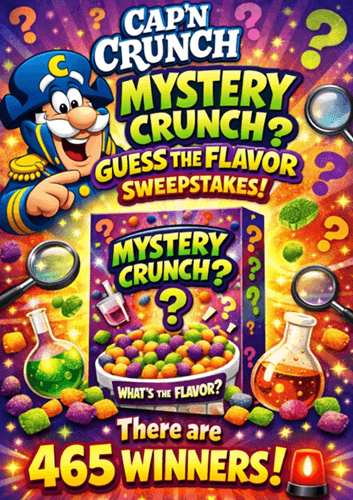 Cap’n Crunch Mystery Crunch Guess the Flavor Sweepstakes (465 WINNERS!)