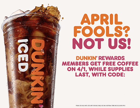 FREE Coffee at Dunkin on April 1st