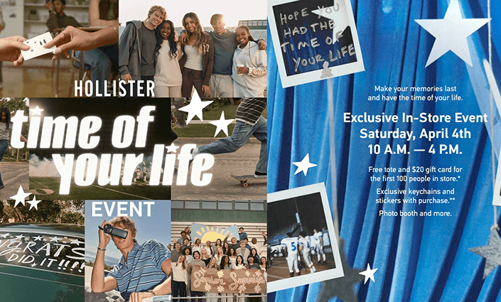 FREE Time of Your Life Event at Hollister on April 4th – FREE $20 Gift Card + Tote Bag