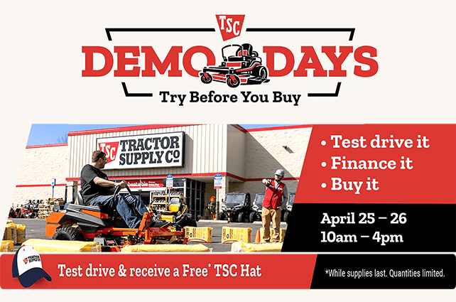 FREE TSC Hat When You Test Drive a Mower at Tractor Supply on April 25-26