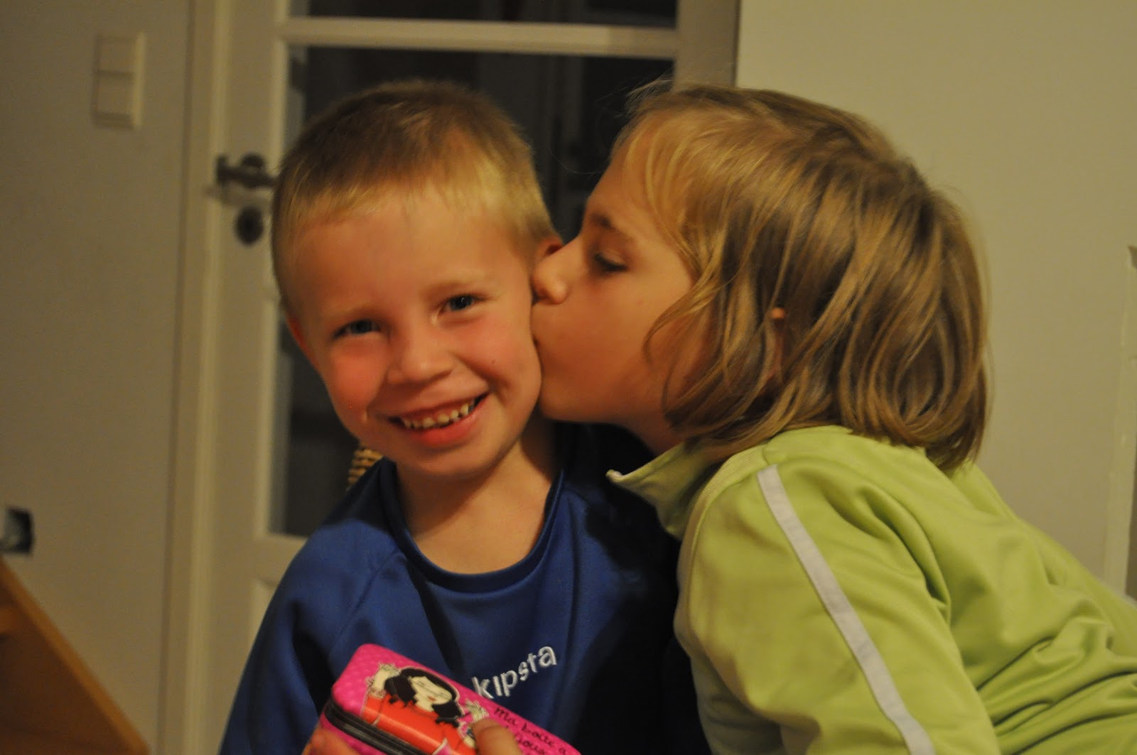 trop contente des cadeaux de son petit frère ;-)
