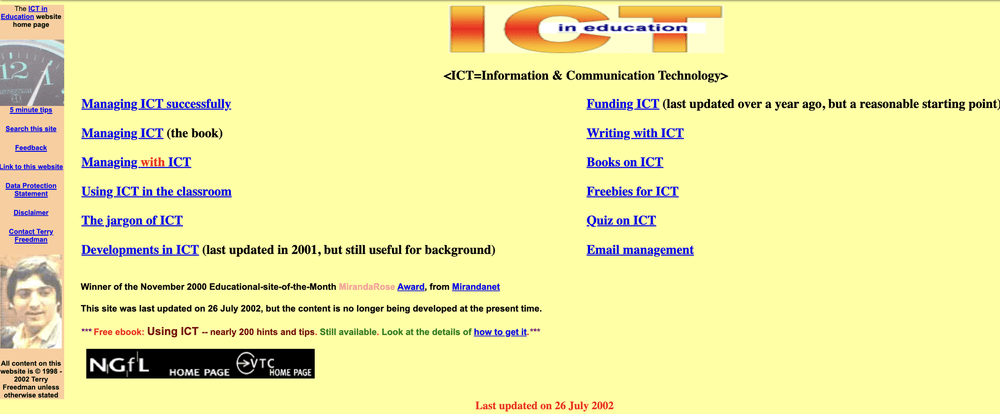 The ICT in Education website circa 2002