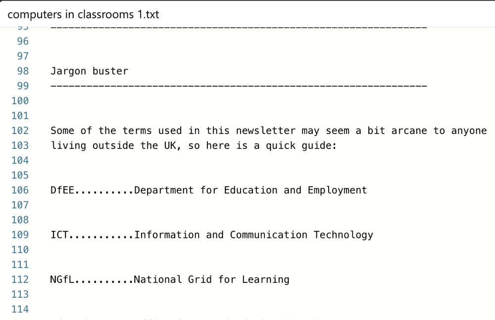 Going back to my newsletter, which started life as Computers in Classrooms back in 2000, it was in plain text format but very quickly attracted a very large number of subscribers. I suspect that was because there wasn’t much else out there at the time, and also because the content — which is the main thing in my opinion — was damn good! Well, you can judge for yourself because, as it’s coming up to the newsletter’s 25th anniversary, I thought it might be fun to reproduce the first issue, which I’ve done below.