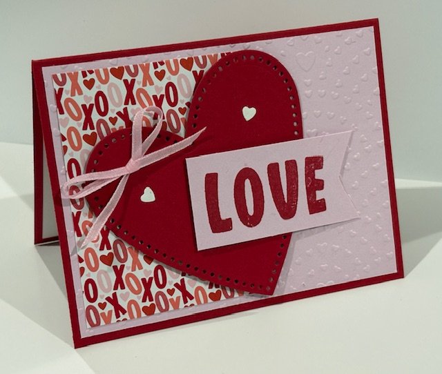 Two pieces of Pretty in Pink Cardstock for the hearts (stamped with Real Red ink) 2 1/4″ x 2″