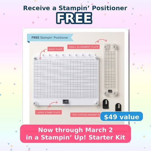 Yes, you read that right. Join Stampin’ Up by March 2nd and receive the brand new Stampin’ Positioner FREE