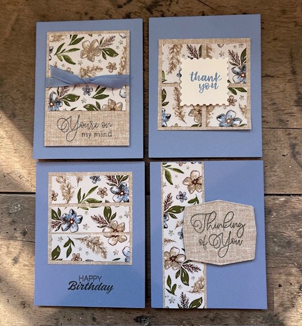 I have always loved One Sheet Wonders. Have you done one? You MUST try it! ! Here are the 4 cards I made today Aren't they just beautiful Measurements: One Sheet Wonder Cuts Start with 6' x 6' and cut in half. The first half you will cut at 3' The ...