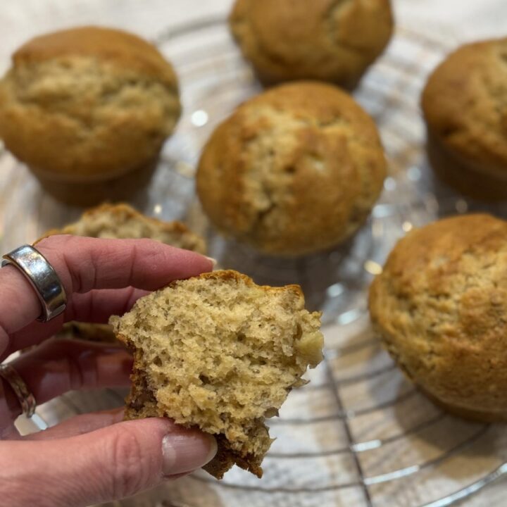 These leftover oatmeal peanut butter muffins with chocolate chips are a dense, healthier type of muffin.